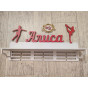 Сверху медальницы расположена фигурка наездника, а снизу палочки для медалей. Покрашена в коричневый цвет...