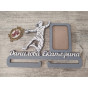 По центру расположена фоторамка 10х15см с именем, а по краям 2 фигурки наездников. Так же имеется полка, надпи..