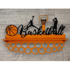 Медальница имеет слово "Basketball", фигурку баскетболиста и палочки для медалей. В данном примере покрыта мор..