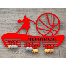 Сверху медальницы расположен большой баскетбольный мяч и фигурка игрока, а на корпусе надпись ЧЕМПИОН...