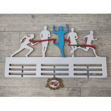 Данная медальница сделана в стиле бегунов, а держатели для медалей в виде палочек...