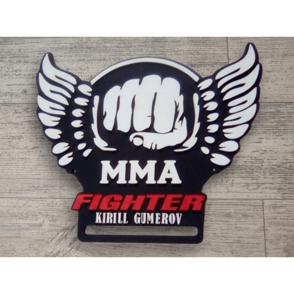 Медальница MMA fighter единоборствам с кулаком, крыльями и надписями.