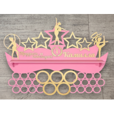 На основании медальницы накладные фигурки гимнасток, звезды и слово "Гимнастика". Сверху фамилия с именем, а с..