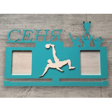Медальница имеет горизонтальную и вертикальную фоторамки размером 10х15см, имя, 2 фигурки кубок, вешалки для м..