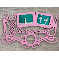 Медальница сделана в необычном стиле. Имеет узоры, 2 фоторамки, 2 фигурки, слово "Гимнастика" и кубок. Сами ме..