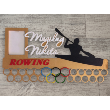 Данная медальница имеет фоторамку 10х15см, надпись и фигурку. Снизу олимпийские кольца...