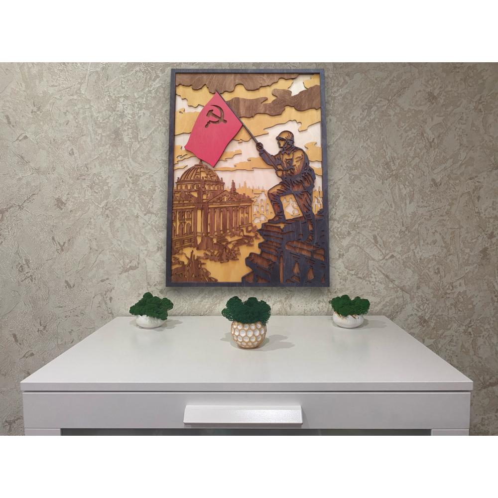Многослойное панно состоящее из 4х слоев посвященное Дню Победы состоящее из 4 слоев.
