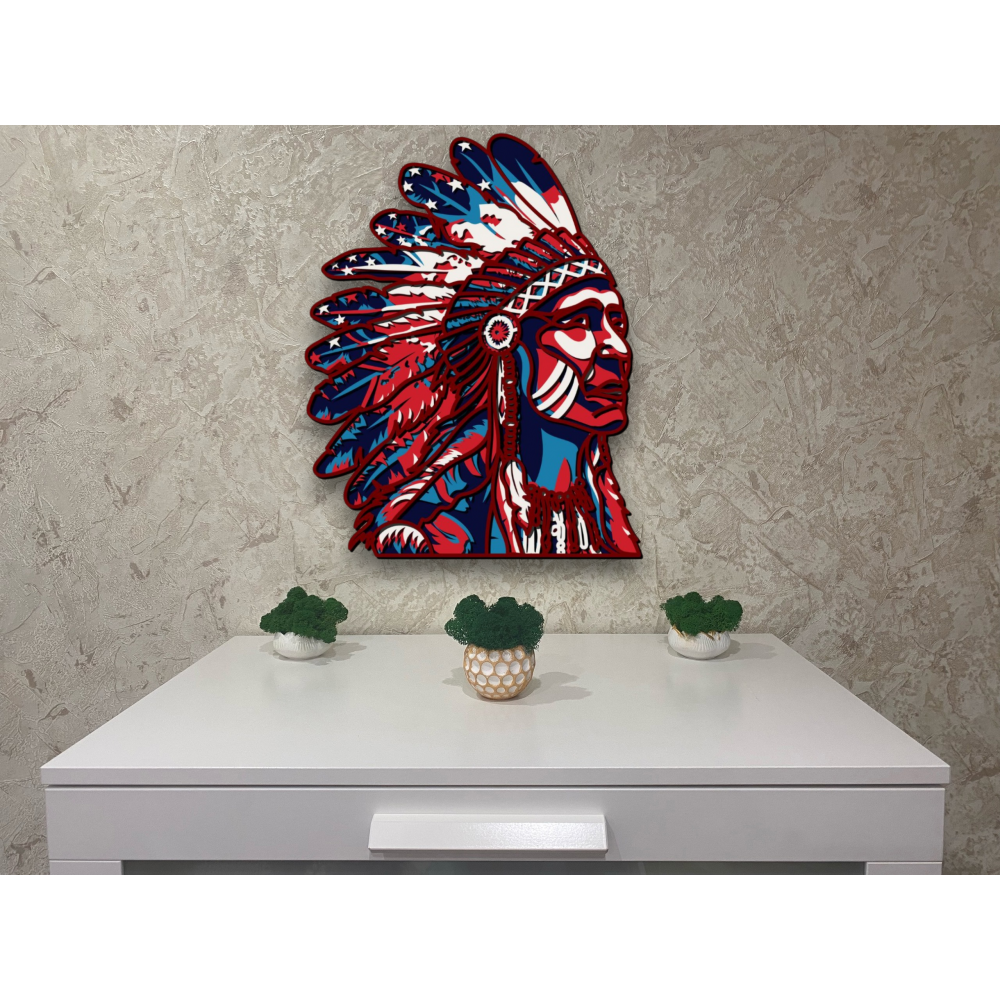 Многослойное панно из фанеры с изображением индейца состоящее из 5 слоев.
