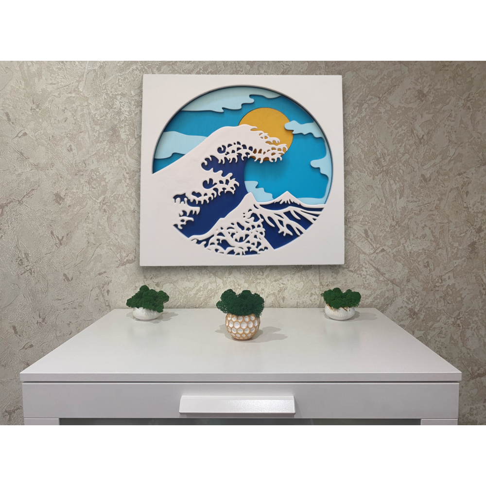 Многослойное панно состоящее из 4х слоев с изображением волн.